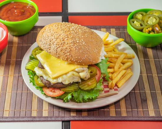 The menu is a feast of flavors and creativity, featuring standout items that have earned rave reviews. Sink your teeth into the Pantalones Cuadrados, a glorious Hawaiian beef burger topped with juicy pineapple, crispy bacon, fresh tomato, lettuce, and pickles, complemented by crispy fries and a refreshing drink—all for just MX$160.00. If you’re looking for something super hearty, don’t miss the Sra. Pouff, featuring a massive arrachera burger adorned with bacon, cheese, spicy guacamole, pickles, fries, and soda—an indulgent treat for just MX$150.00.